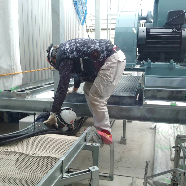 - 材料の運搬 屋上まで配管を運ぶだけでもひと苦労です。